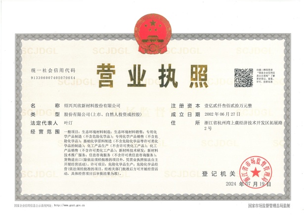 紹興興欣新材料股份有限公司成立于2002年06月27日,占地面積122畝,位于杭州灣上虞經(jīng)濟技術(shù)開發(fā)區(qū)拓展路2號,現(xiàn)有職工200余人,專業(yè)技術(shù)人員50余人;博士、碩士研究生30余人組成的一支知識型、專業(yè)化的技術(shù)科研團隊。公司面向全球市場,專業(yè)開發(fā)電子化學(xué)品、環(huán)保化學(xué)品、醫(yī)藥中間體、高分子材料等先進新材料重點領(lǐng)域的省級科技型企業(yè);建有浙江上虞、安徽東至兩個生產(chǎn)基地。目前為“國家高新技術(shù)企業(yè)”、浙江省“隱形冠軍”企業(yè)、浙江省專精特新中小企業(yè);建有“省級”研究開發(fā)中心,共建天津大學(xué)浙江紹興研究院電子化學(xué)品研發(fā)中心。